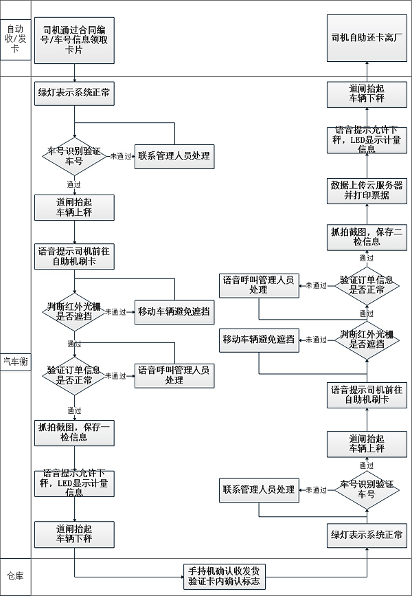 按功能性劃分,主要由以下幾個小系統組成:門禁系統,數字式電子汽車衡系統,自助終端智能處理系統,IC驗證系統,車號自動識別系統,圖像抓拍與視頻監控系統,LED顯示系統,紅外防作弊系統,紅綠燈指示系統,語音提示系統,PDA手持終端確認,小程序系統遠程管理等。